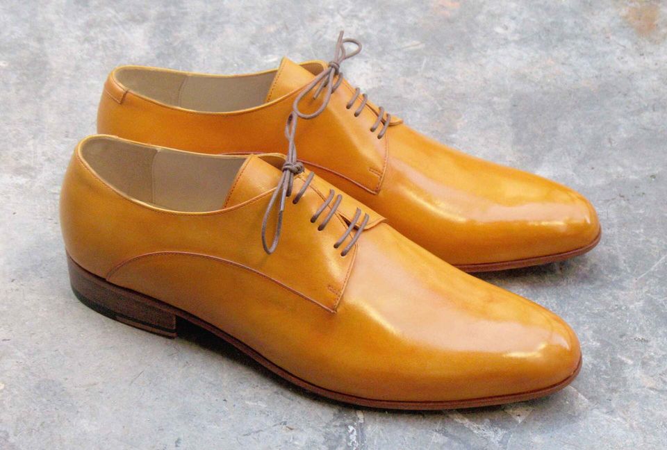 Sur cette paire, la patine a été faite artisanalement dans une couleur fauve qui se marie parfaitement avec des vêtements clairs, mais aussi avec des bleus ou des marrons foncés...